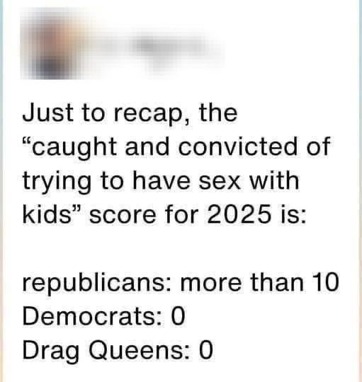 The meme tries to defend drag performers by suggesting that others—namely Republicans—are more often convicted of child sex crimes.